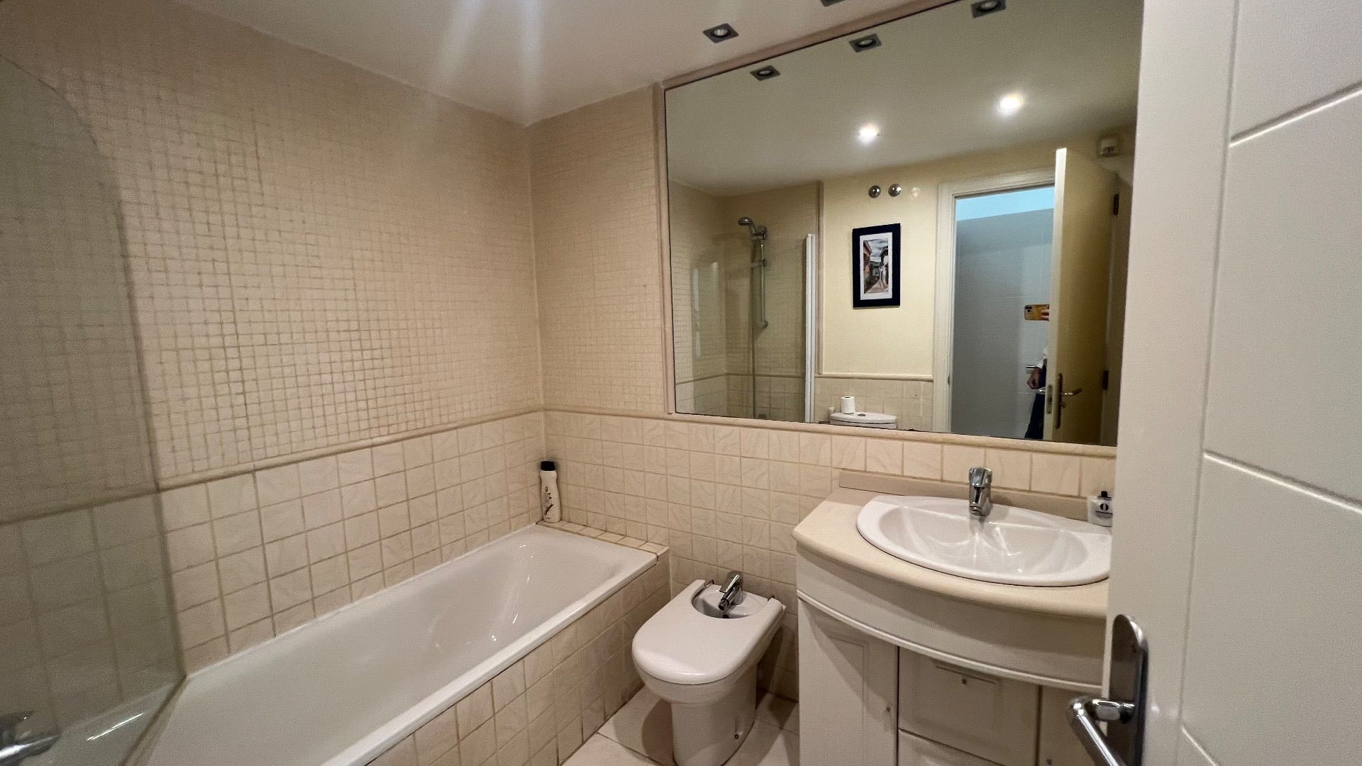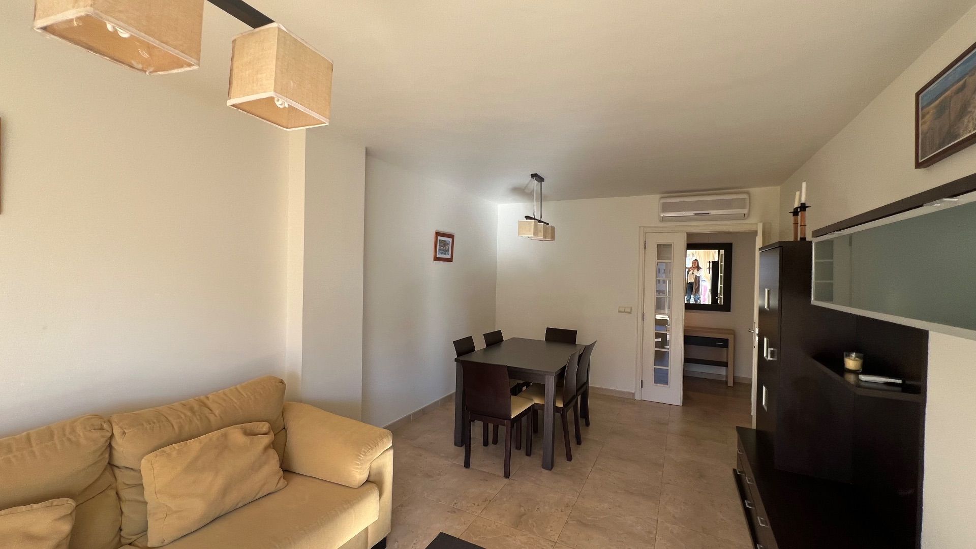 From the moment you step in, you’ll be greeted by the comforts that make this place a home away from home. With two bedrooms, the apartment offers a cozy and elegant space. The living room, equipped with air conditioning, is the perfect spot to unwind after a day of exploration, and the fully equipped kitchen adds to the convenience.